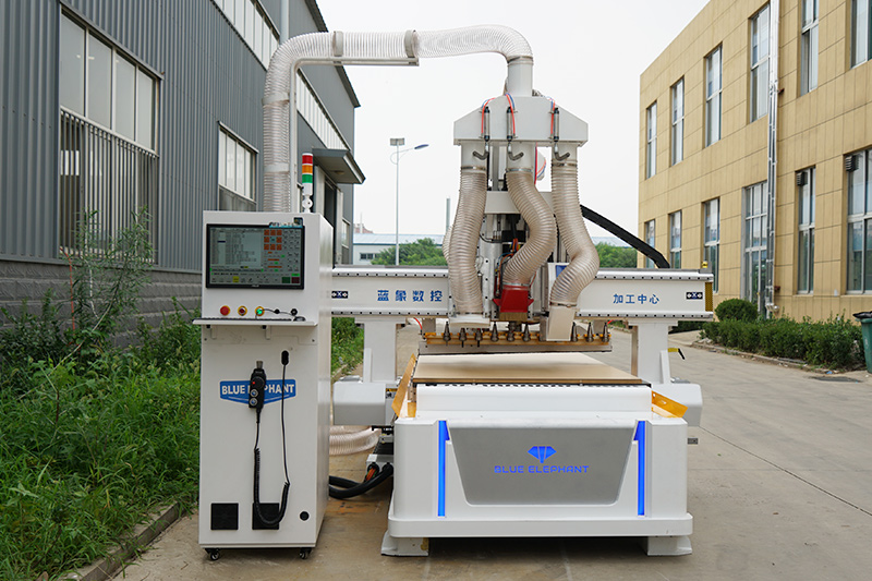 采用HQD自動換刀主軸和大容量刀庫,可以解決各種復雜生產工序,同時機器還配置了排鉆組和鋸片主軸,能夠解決板式家具三合一、二合一鏈接件所需安裝孔及隱形件所需安裝槽。