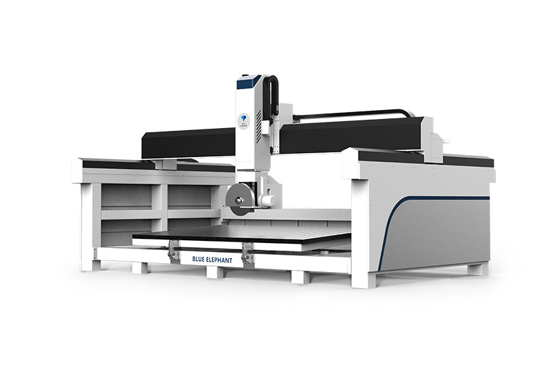 五軸橋切鋸可以通過鋸片切割石英石、大理石、巖板等裝飾材料,鋸片和刀具結合,一機多用,功能強大,具有任意直線切割、倒邊、切割圓弧、切割多邊形、銑削異形、磨邊、仿形等先進功能,廣泛適用于石材加工廠、廚房臺面加工、背景墻仿形等領域。