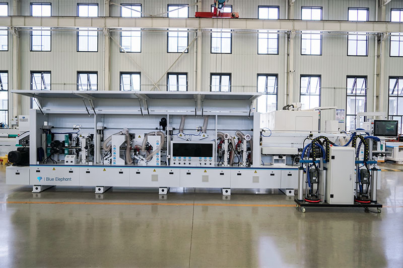 主要功能:分離→預銑→PUR膠鍋→皮帶壓輪→粗修→精修→刮邊1→刮邊2→齊頭→仿形跟蹤→平刮→清洗→拋光1→拋光2→拋光3。