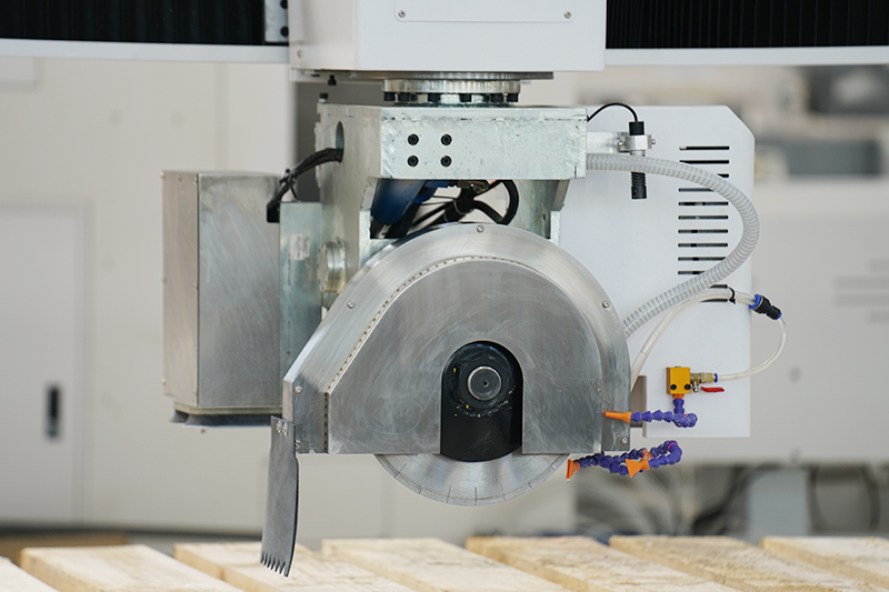 4+1數控橋鋸機配備液冷主軸,可與鋸片交替使用,大大提高生產效率。